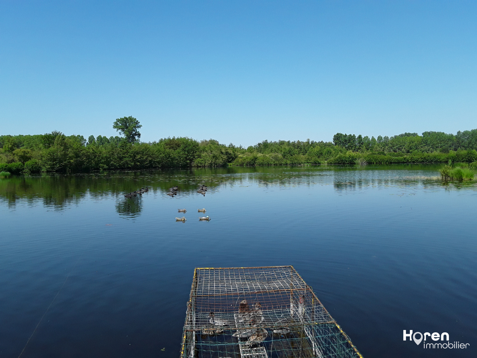 Partie taillis, peupleraies, trous d'eau, fossés, une petite mare d'environ 5000 m2 avec hutteau immatriculé et magnifique plan d'eau d'environ 6.5 hectares d'un seul tenant avec hutte de chasse immatriculée.