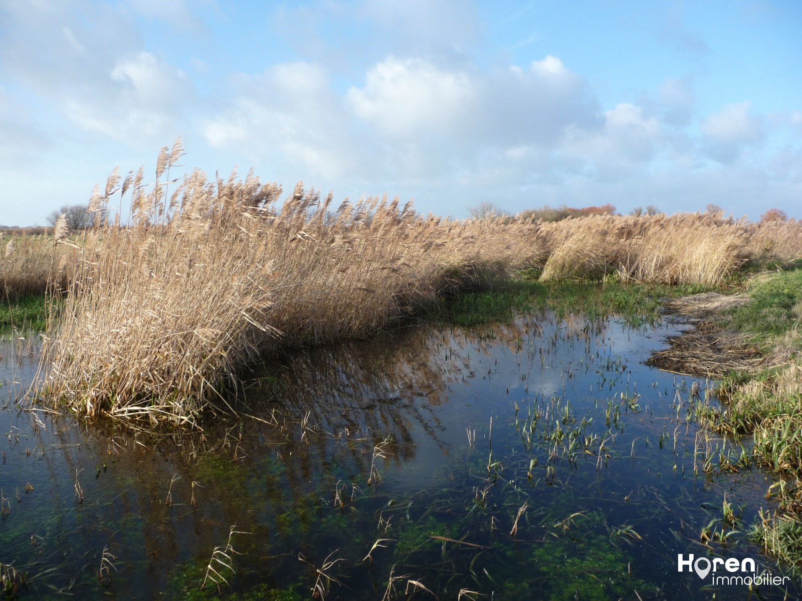 Baie de Somme sud à 700 m de la baie, propriété de chasse en nature de marais, patûre, bande boisée, roselières.