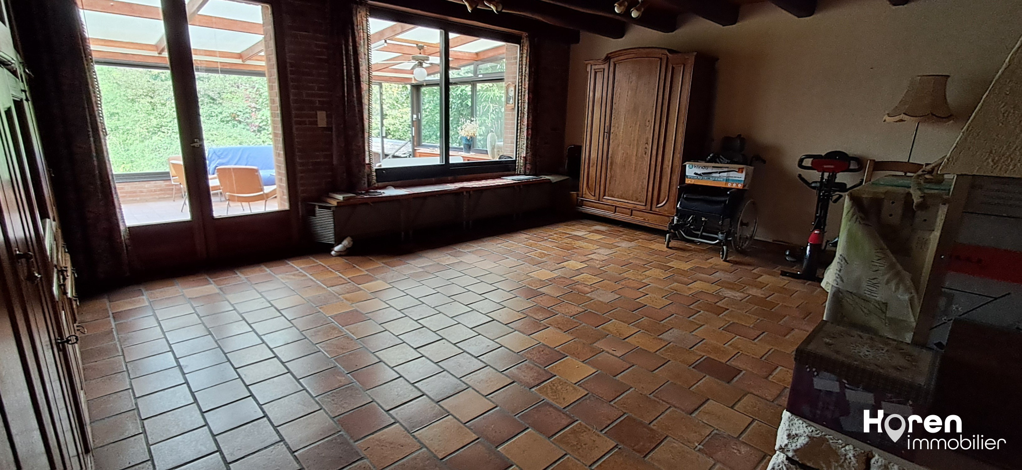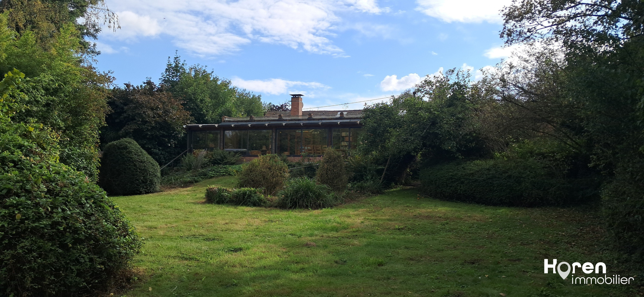 Maison d'une surface de 130 m2 avec une très grande véranda offrant une superbe vue sur l'étang.