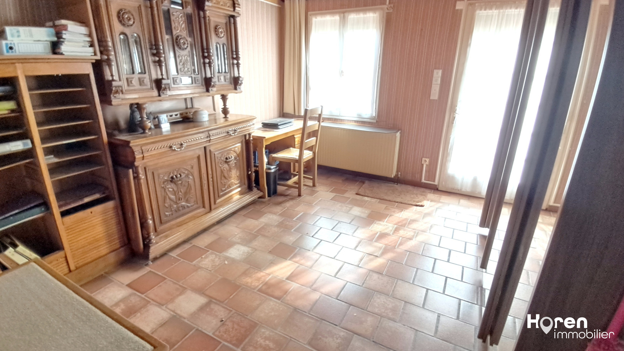 Elle se compose d'une entrée, une salle à manger, une cuisine, deux chambres, salle de bains, wc séparé et d'une véranda de 52m2 environ.