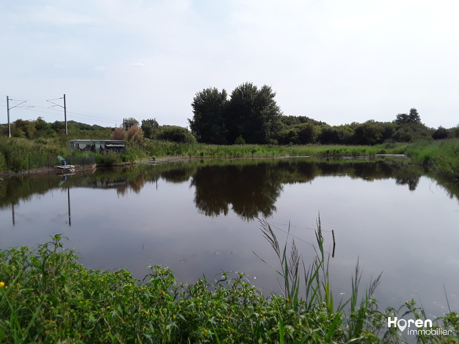 Terrain de loisirs (non viabilisable) pour la chasse avec roselière, taillis, mare d'environ 2 500m2, hutte immatriculé (mobilhomme de 20m2).